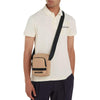 Este bolso compacto presenta bolsillos seguros con cierre de cremallera y una bandolera ajustable en tejido trenzado.
